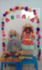 Foi muito animado. Teve muita diversão, música, quadrilha, brincadeiras, comidinhas tradicionais, correio elegante e até visita do nosso compadre do estrangeiro!!!